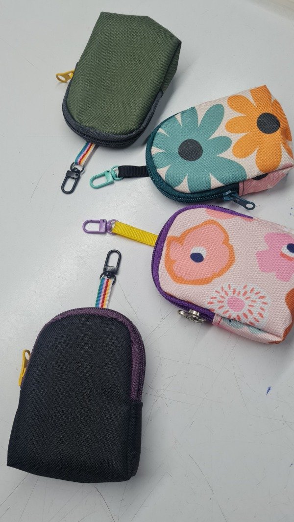 Mini Bolsito con mosquetón de color que facilita para engancharlo en mochilas, bolsos, riñoneras, llavero, donde necesites