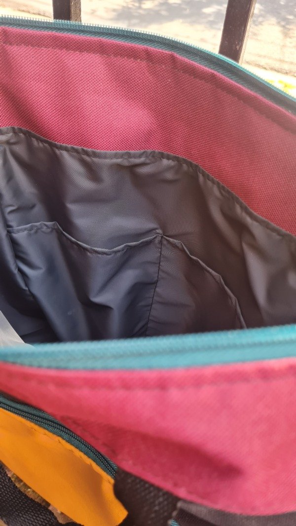 Por dentro esta forrada con tela impermeable y tiene 2 bolsillos internos
