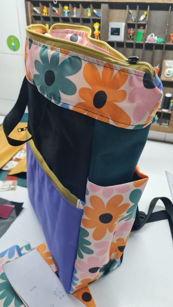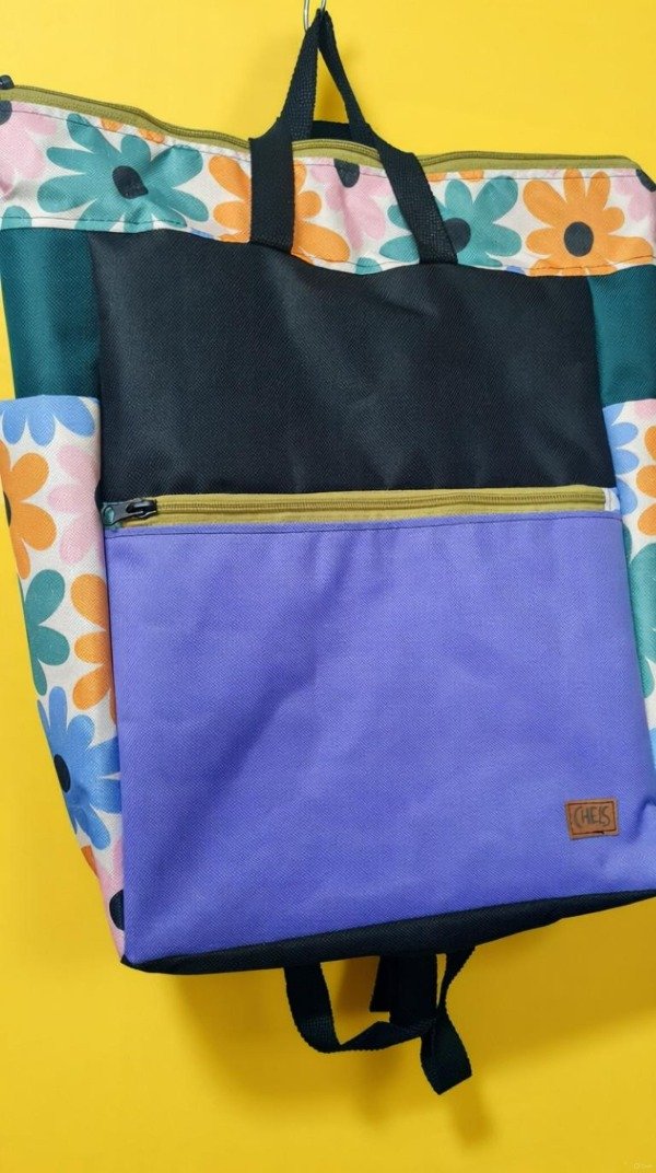 Mochila con cierre confeccionada artesanalmente con tela cordura, tiene un bolsillo con cierre en el frente y 2 bolsillos laterales ideal botellas, termos, paraguas