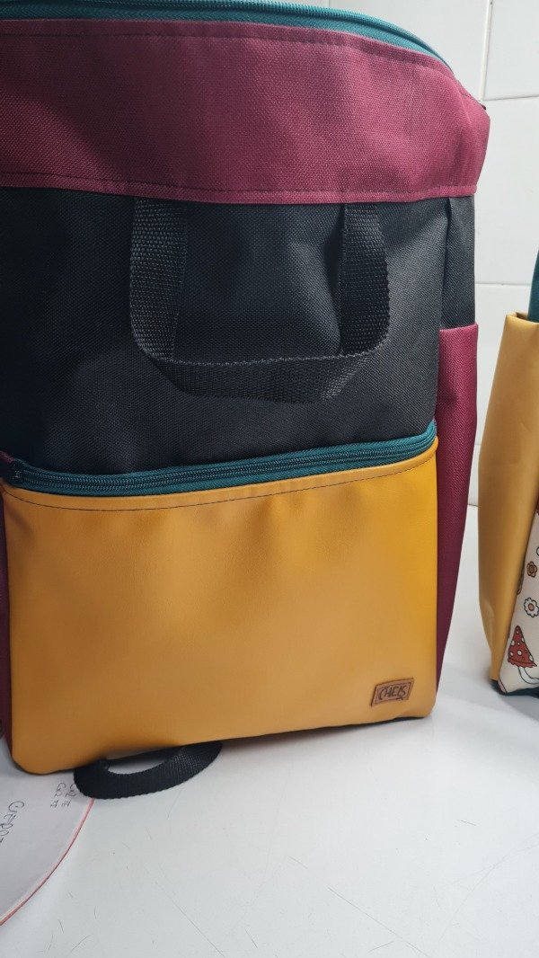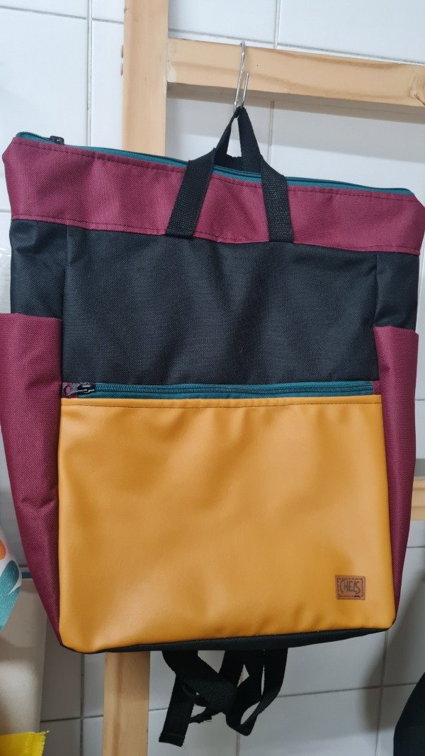 Mochila con cierre confeccionada artesanalmente con tela cordura, tiene un bolsillo con cierre en el frente y 2 bolsillos laterales ideal botellas, termos, paraguas