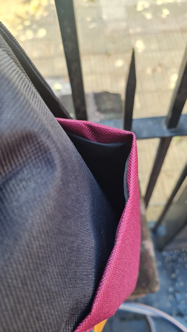 Por dentro esta forrada con tela impermeable y tiene 2 bolsillos internos
