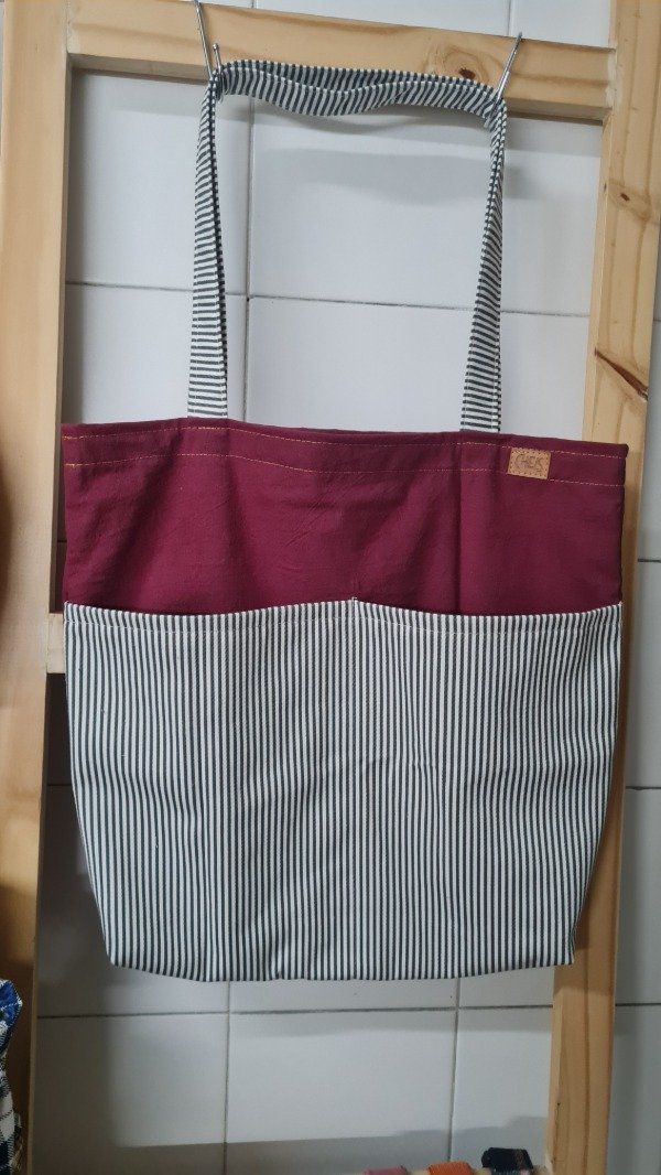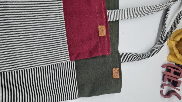 Bolso grande confeccionado artesanalmente con telas de algodón (tusor pesado y gabardina)