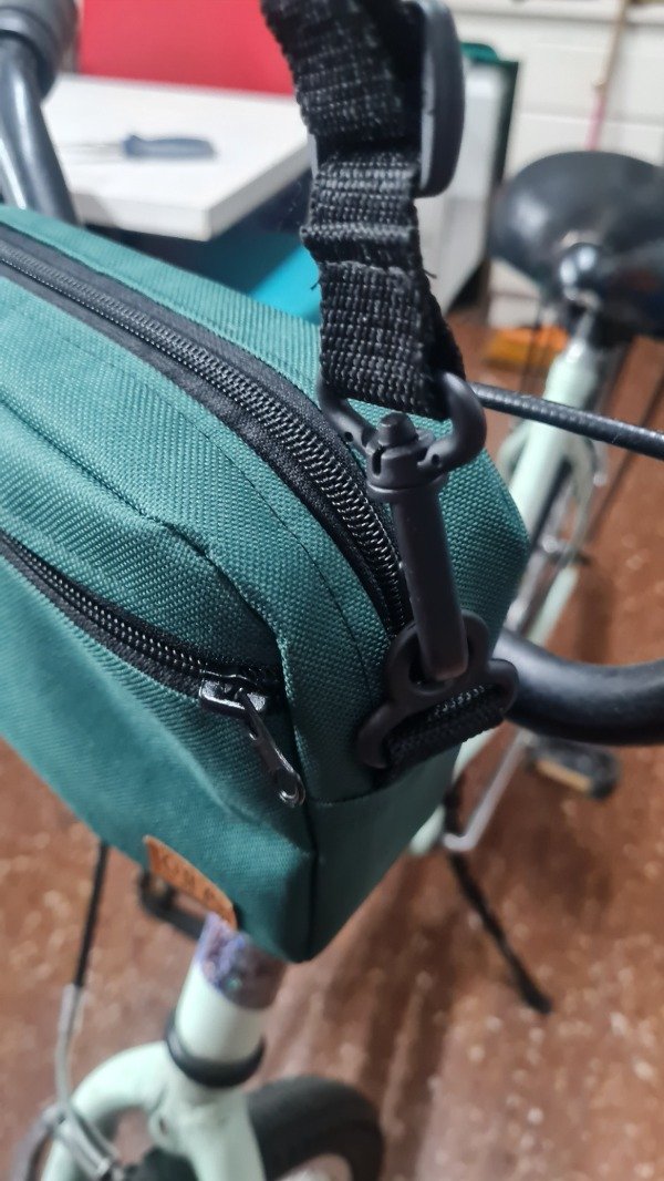 Está confeccionada artesanalmente con cordura en su exterior y tela impermeable adentro, tiene bolsillo exterior con cierre