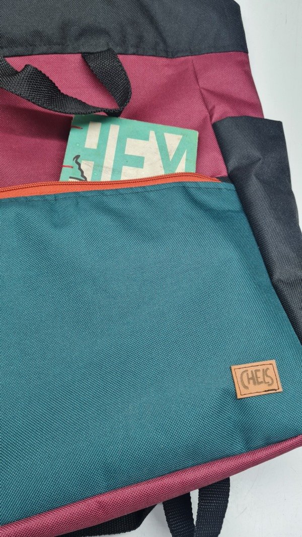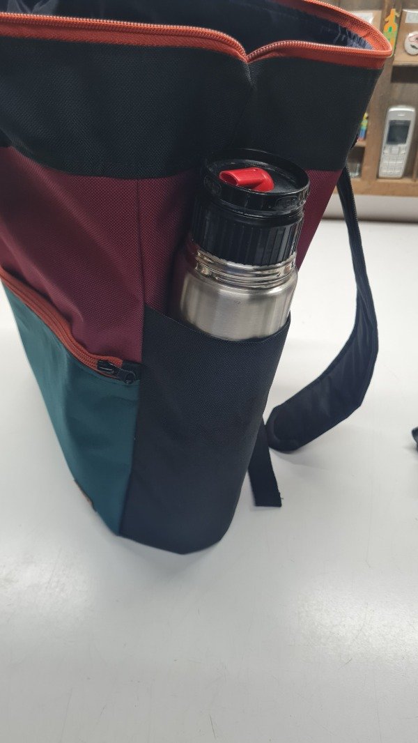 Mochila con cierre confeccionada artesanalmente con tela cordura, tiene un bolsillo con cierre en el frente y 2 bolsillos laterales ideal botellas, termos, paraguas