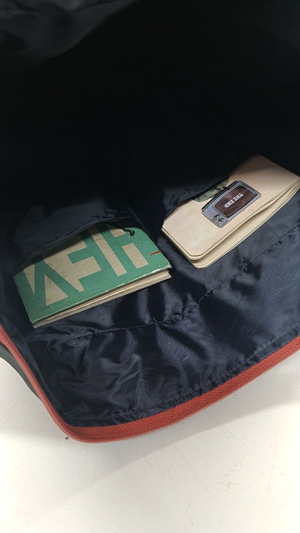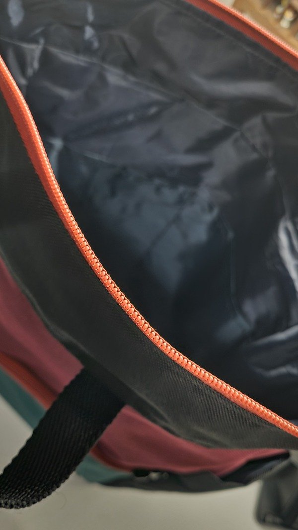Por dentro esta forrada con tela impermeable y tiene 2 bolsillos internos