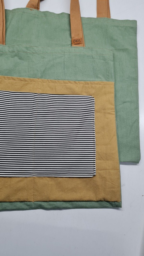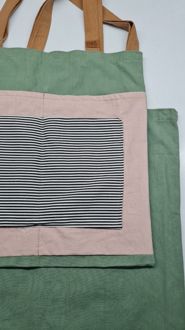 Bolso grande (41x41 cm) confeccionado artesanalmente con telas de algodón (tusor pesado y gabardina)